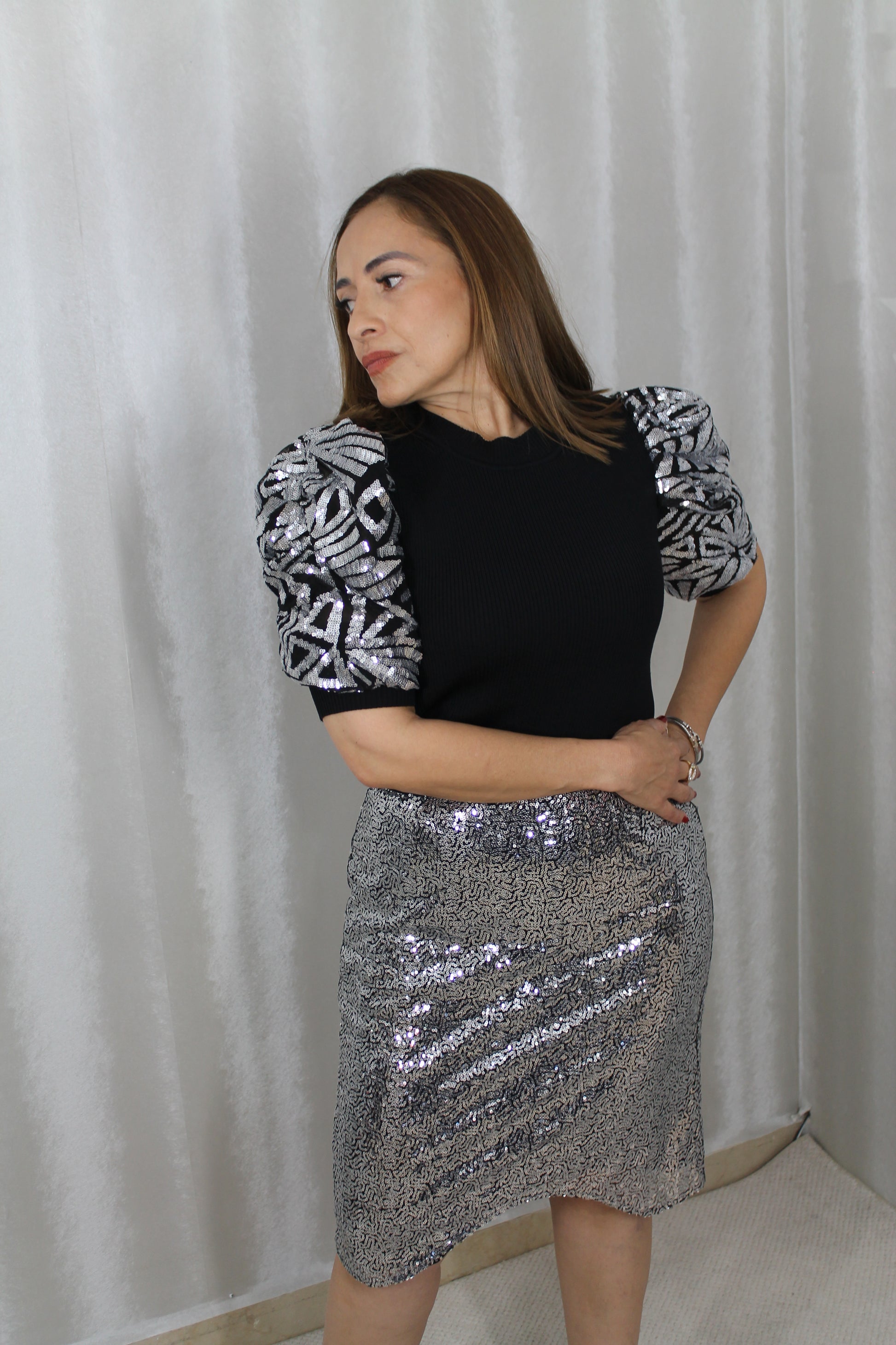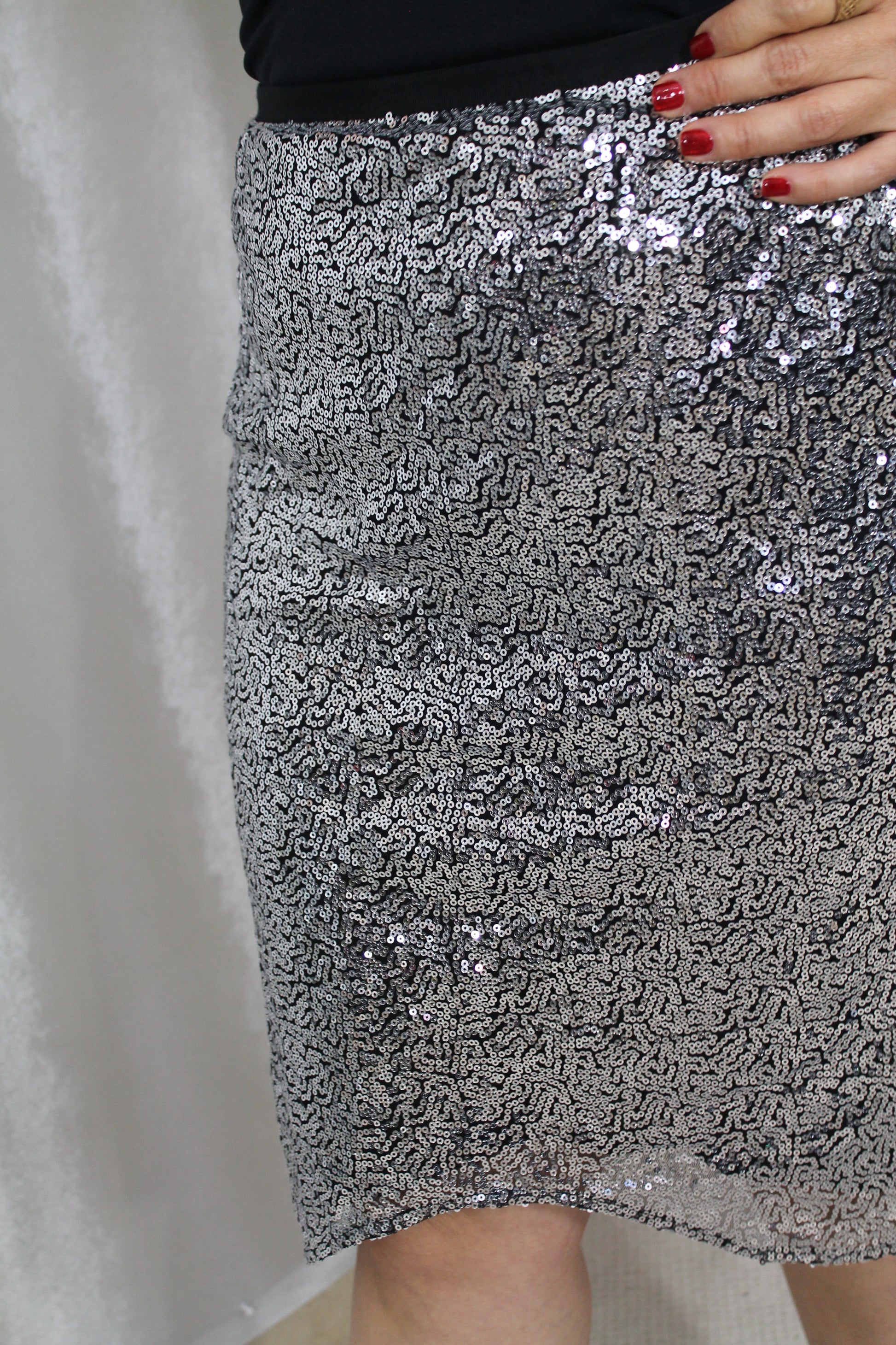 Falda Lápiz Plateada con Brillo – Glamour Sofisticado