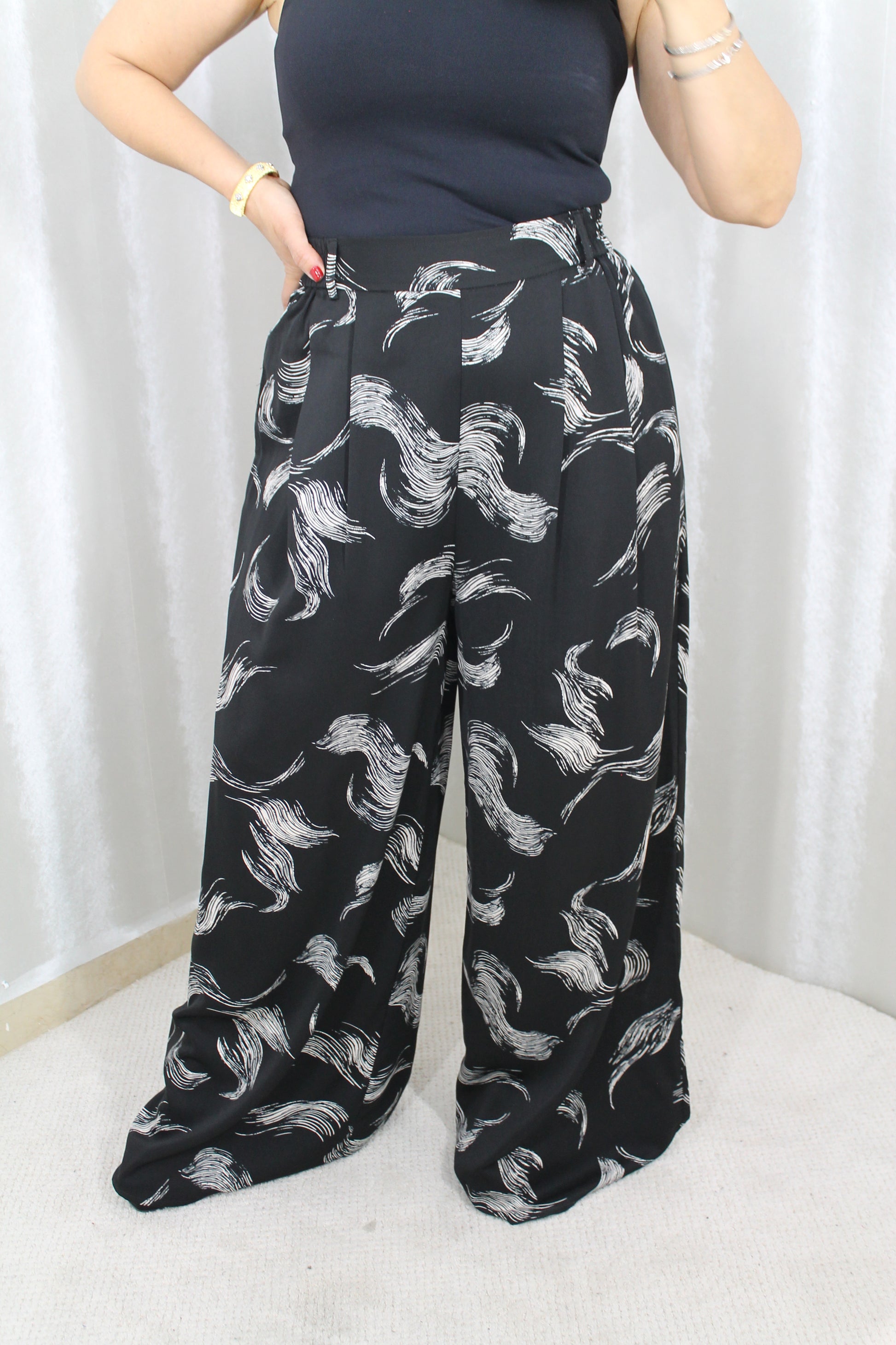 Pantalón Palazzo Negro Estampado – Elegancia Fluida