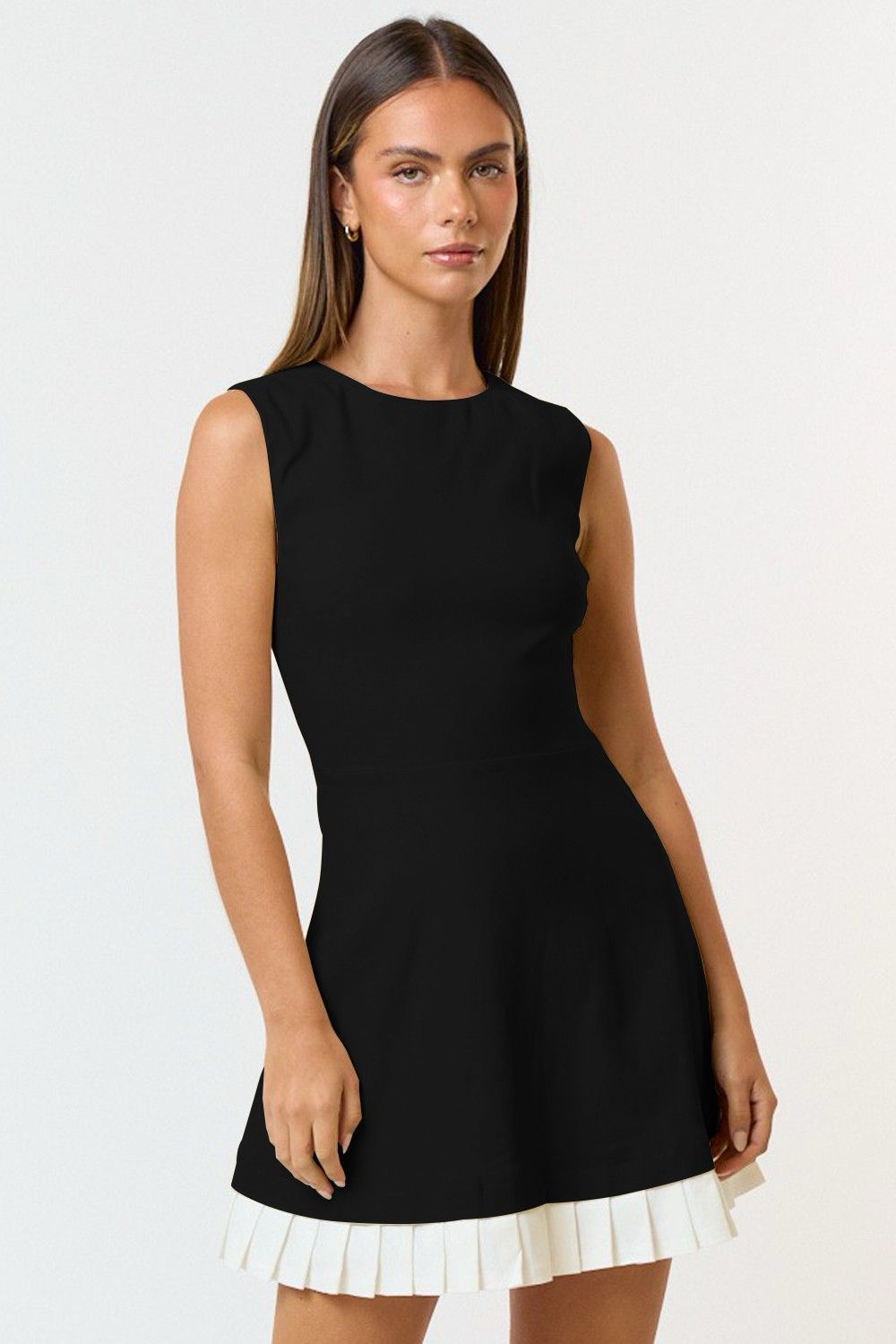 El detalle protagonista es su terminación inferior con plisado en contraste color blanco, que aporta un toque moderno y chic, elevando el diseño clásico del vestido. La caída es fluida y estructurada, perfecta para lucir arreglada sin esfuerzo.